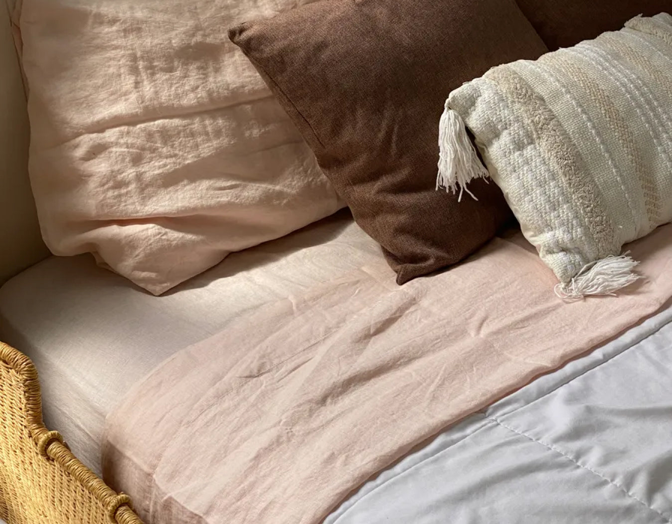 The LuxeWeave Linen bed set in Blush is so beautiful. It’s breathable yet super cooling. I live in Hawaii, so days and nights can get super warm, but these sheets do not get hot. They’re so soft, which a lot of times linen can be a bit rough, this one is not rough! I appreciate the sustainablity of the bedding as well. I highly recommend !